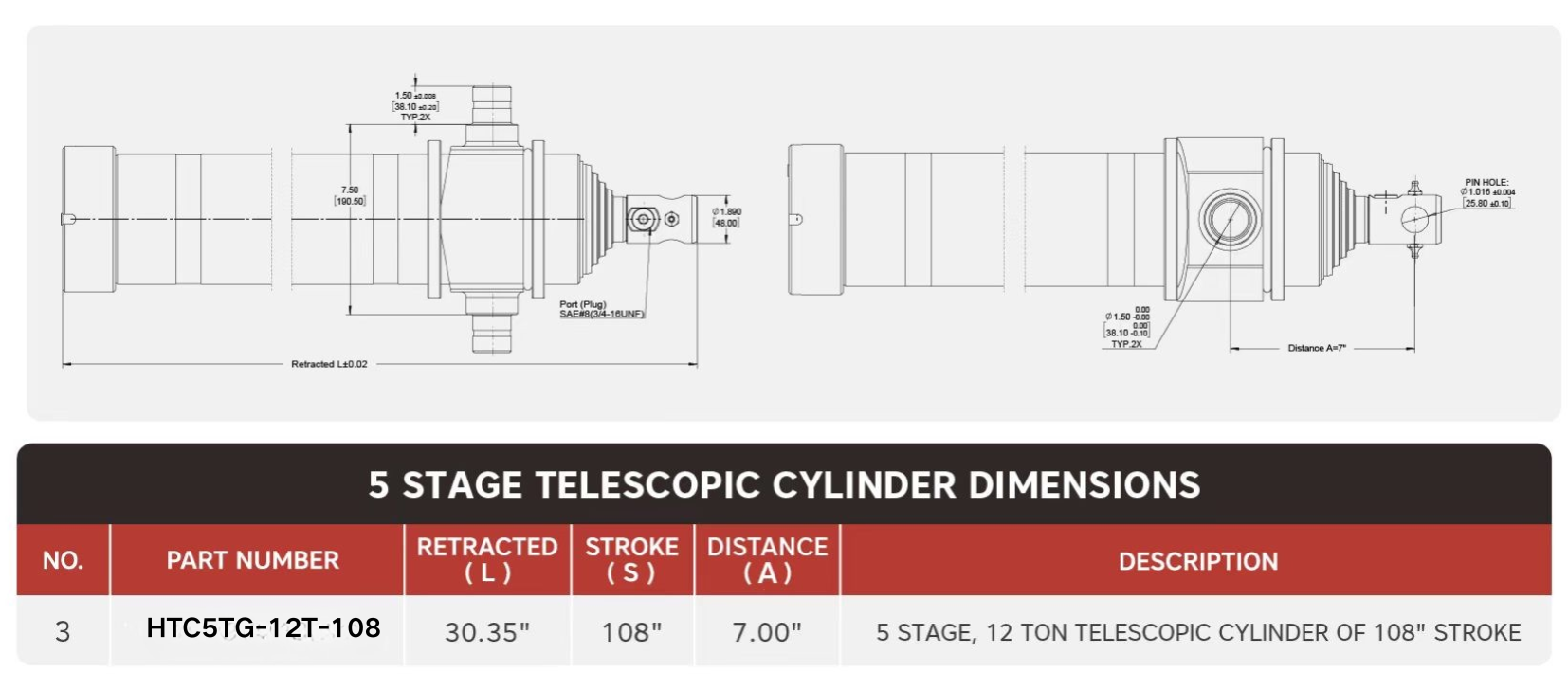 Τηλεσκοπικός κύλινδρος "HTC5TG-12T-108", 5 Stage, 12 Ton Of 108"