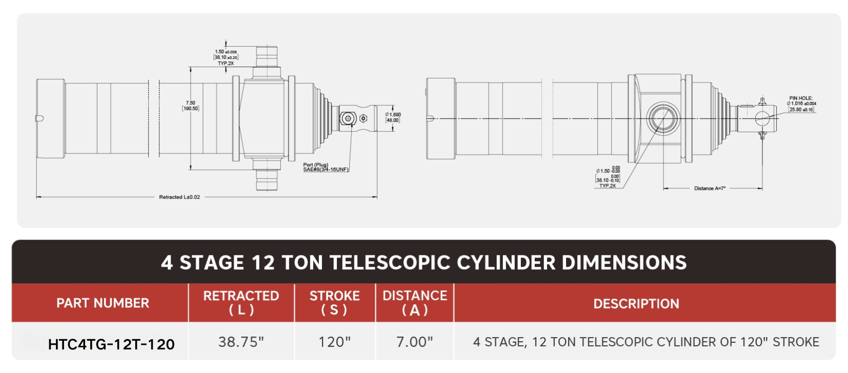 Τηλεσκοπικός κύλινδρος "HTC4TG-12T-120", 4 Stage, 12 Ton Of 120"