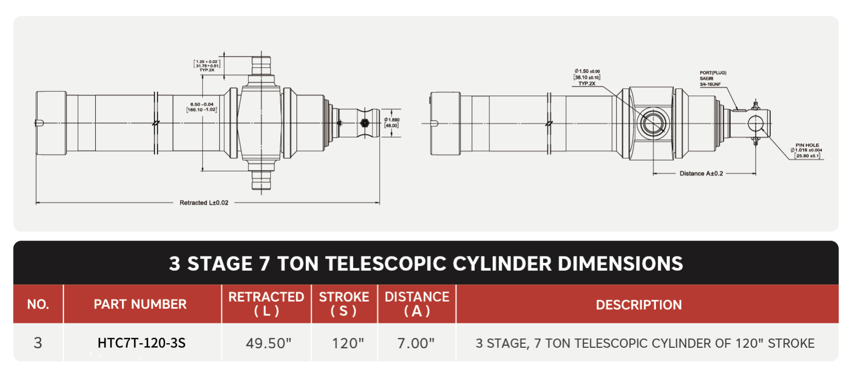 Τηλεσκοπικοί κύλινδροι "HTC3TG-7T-120", 3 Stage, 7 Ton Of 120"